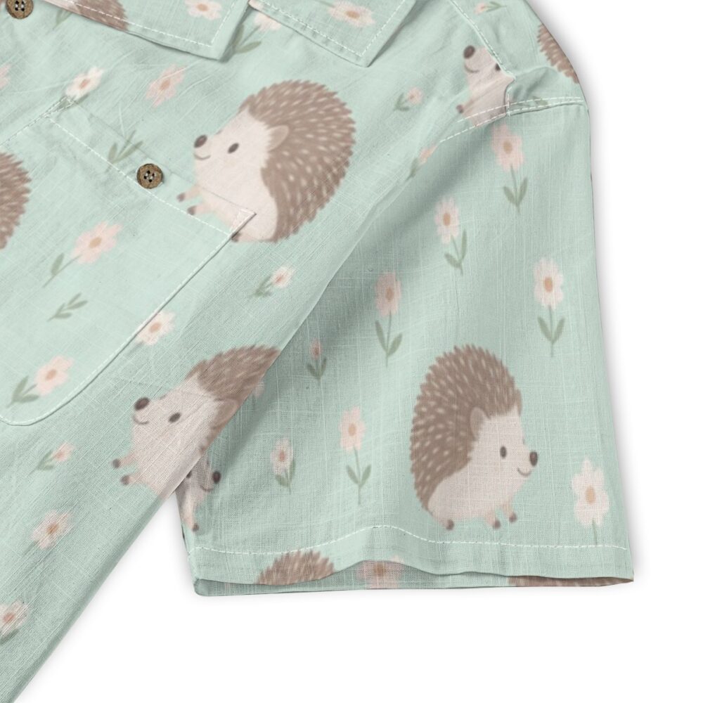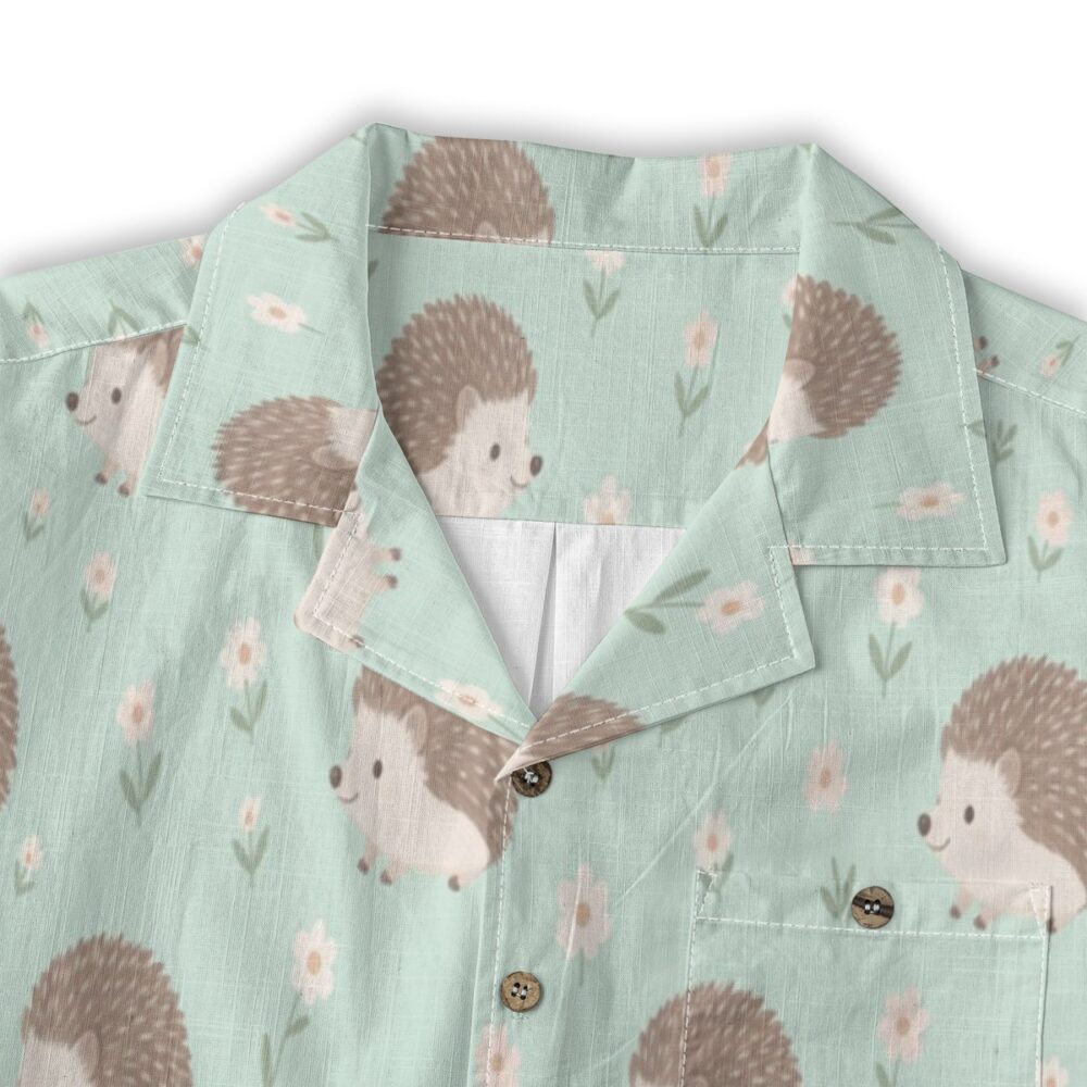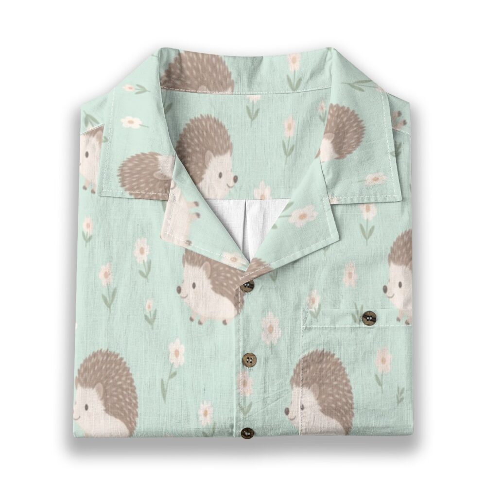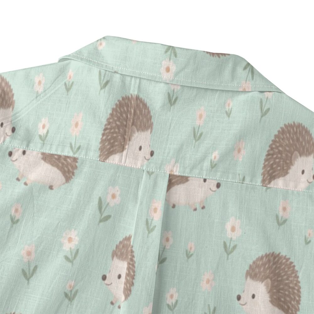 Tiny hedgehogs nestled among delicate florals create a charming and gentle pattern. The pastel mint background enhances the soft tones, giving a fresh and light appearance. Even spacing keeps the design balanced and inviting.