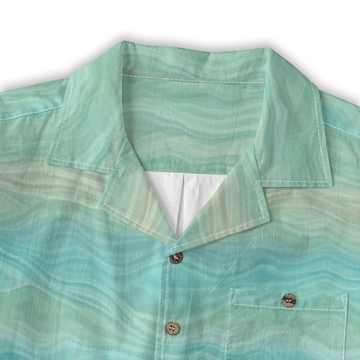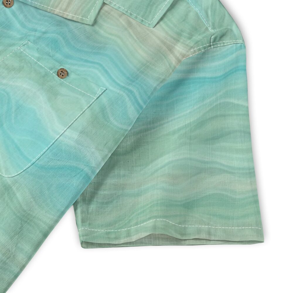 Soft lagoon hues blend seamlessly into each other, forming a refreshing pattern inspired by clear tropical waters.