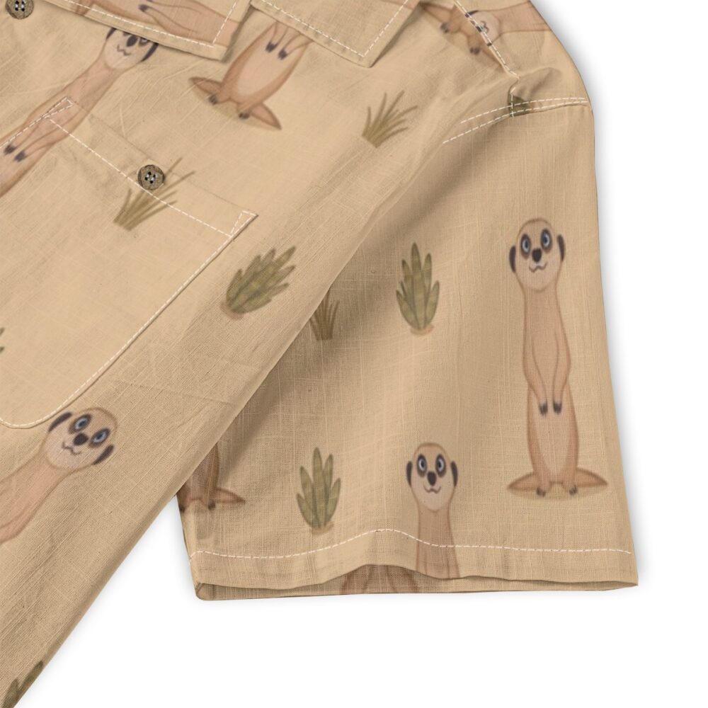 Charming meerkats stand alert in a breezy desert-inspired pattern filled with warmth. Soft sandy tones and gentle browns create a sunlit atmosphere. The airy spacing keeps the design light and playful, capturing a relaxed, sun-drenched mood.